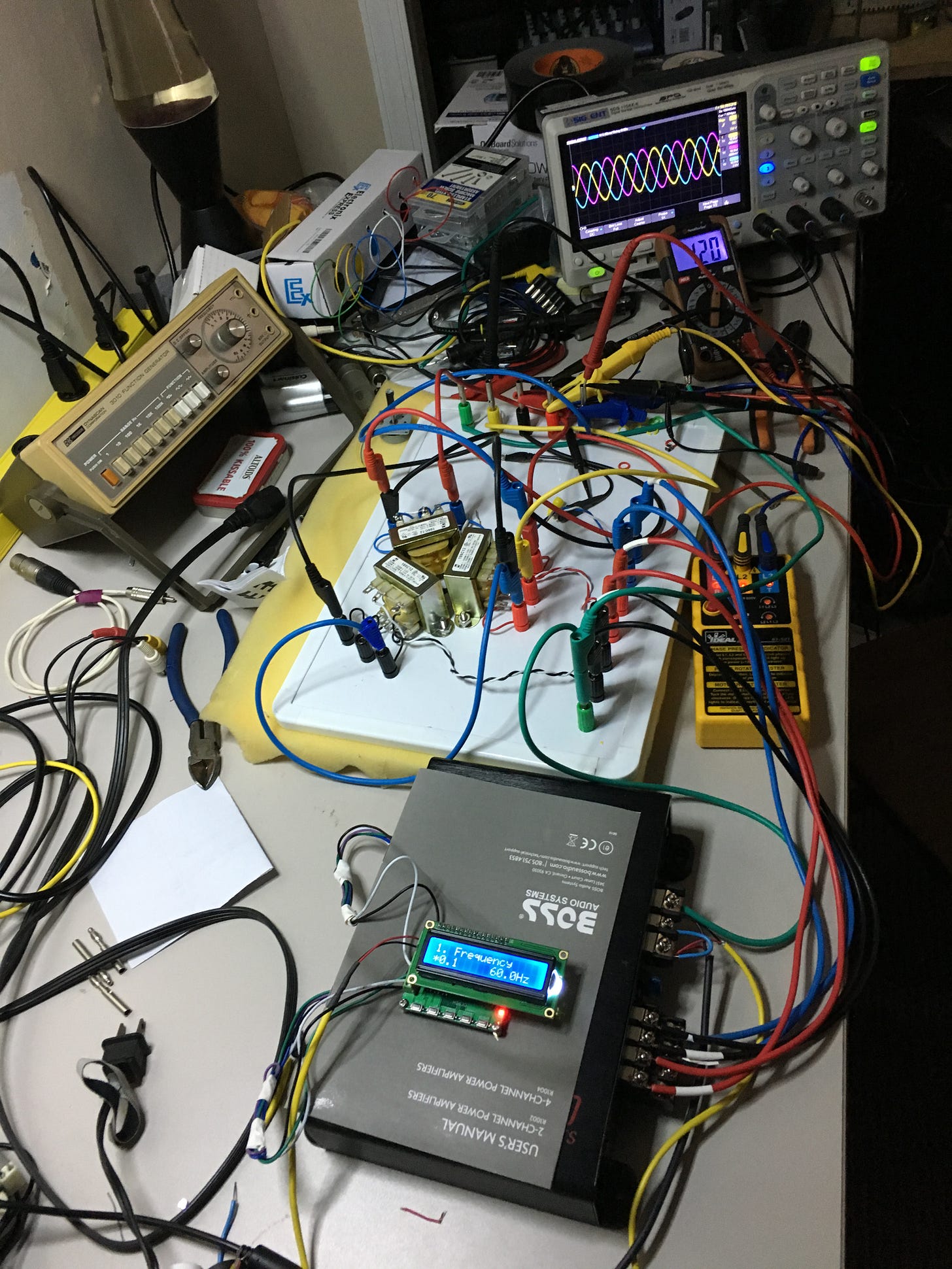 Kids, don’t try this at home. It makes 3-phase power at 100mA per phase in all flavors of Delta and Wye service up to 480/277 Volts…