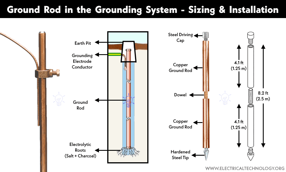 That's a very strange looking ground rod (with the screw-in pointed tip and the dowel in the middle). Why not just show a conventional 8 foot long (or 10 foot long) copper plated ground rod?