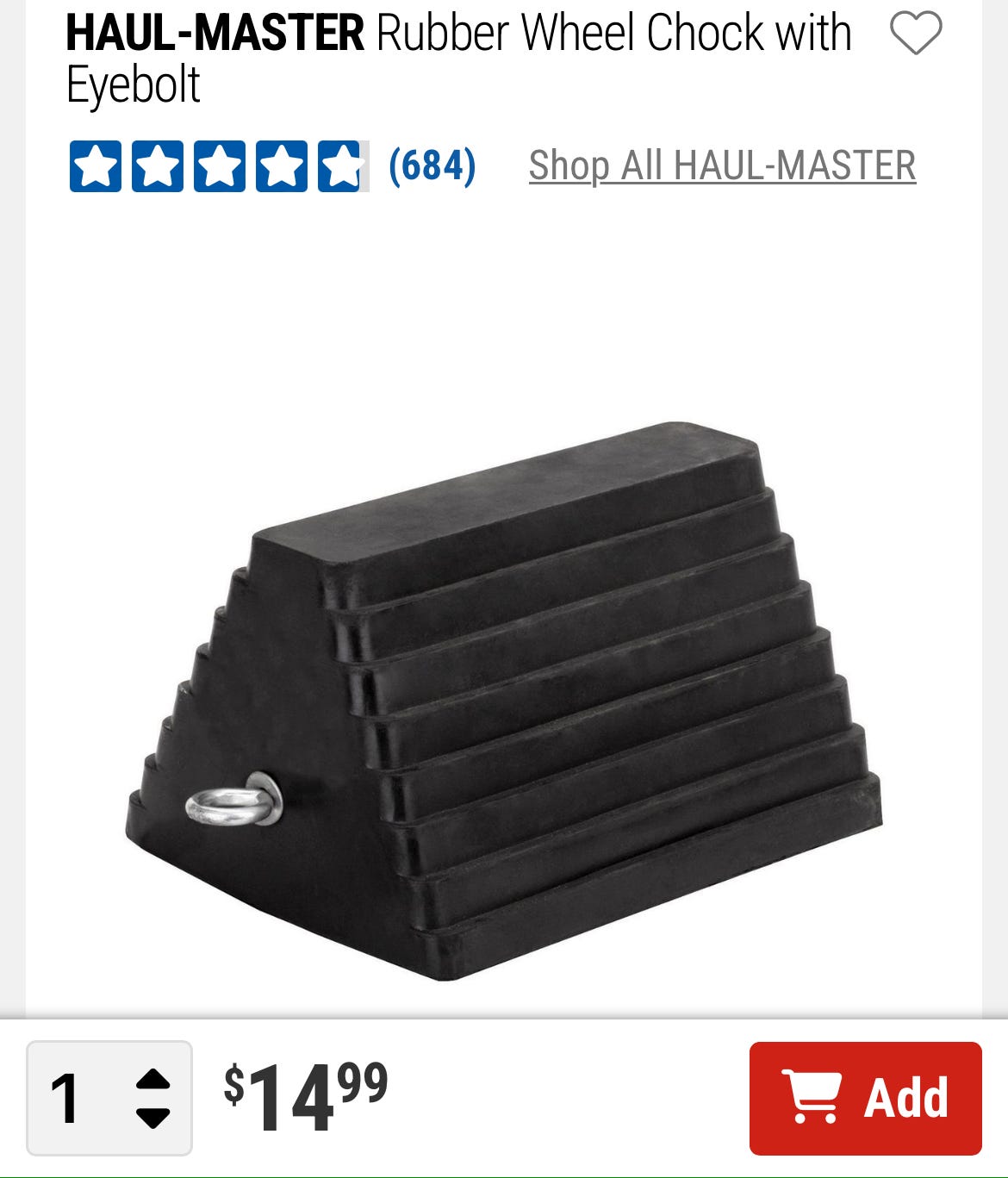 Back when I was doing live sound production we had wheel chocks for the trucks and trailers that looked very simiar to this one from Harbor Freight. So I’ll pick up a pair. I agree that the plastic ones break if you run over them, but these solid rubber ones look indestructible.